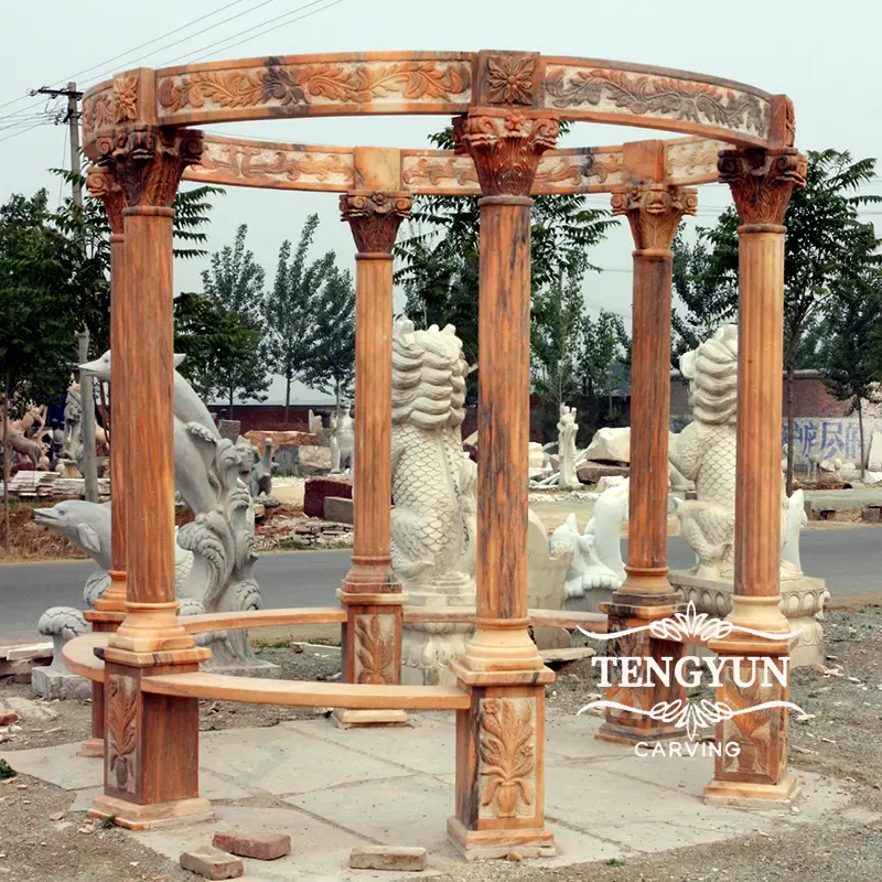 Outdoor Decorative Classic 3M Sunset Red Marble Gazebo With Six Pillars
