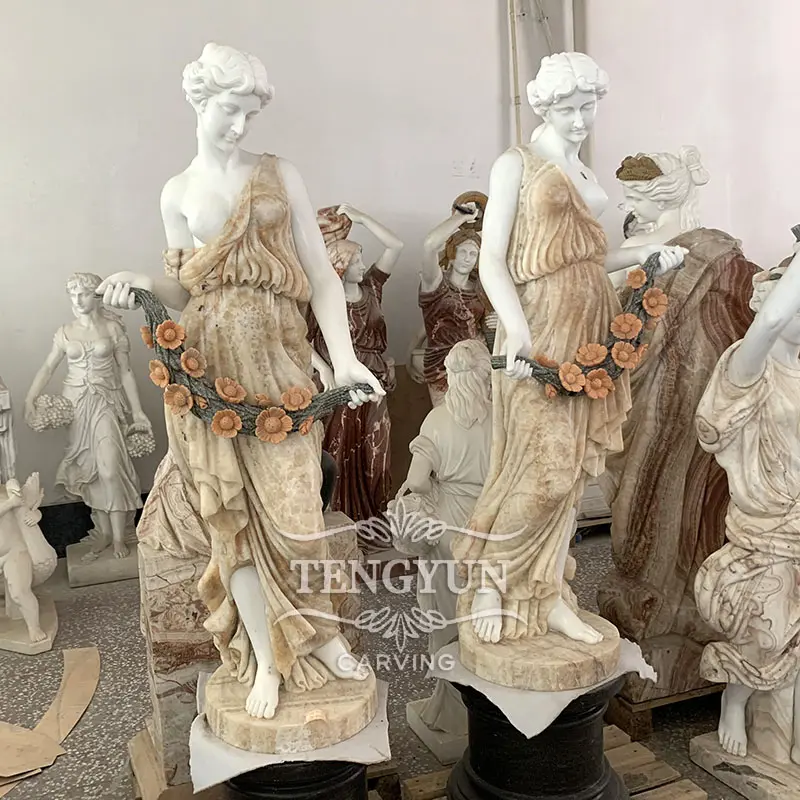Garden outdoor decor natural marble flower lady statue hand carved mix marble female figure sculpture