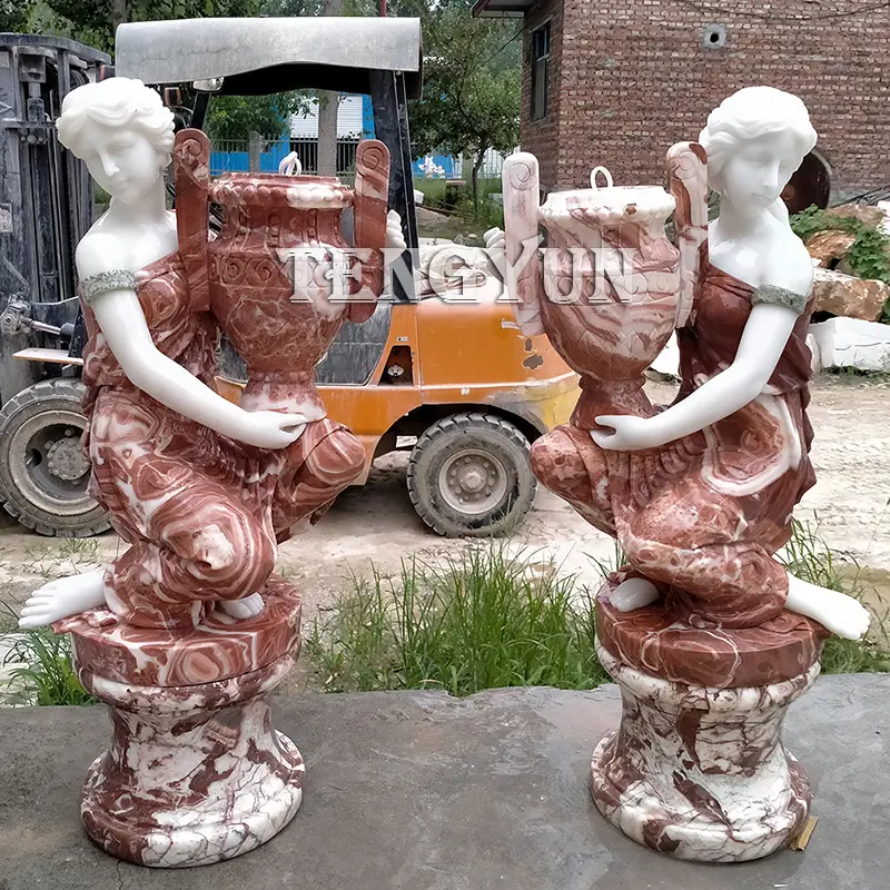 1. Material: The material of marble lady statue flowerpot is natural marble. But body, dress and flowerpots are different kinds of marble.The colors are natural marble color. So natural color and veins of marble make your stone lady statue flowerpot unique in the world.