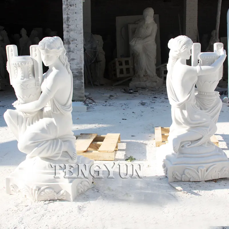 1. Statue: The pair of beautiful female statues can be used as statue decoration for indoor or outdoor. The delicate face, perfectly carved, is a very fine ornament.