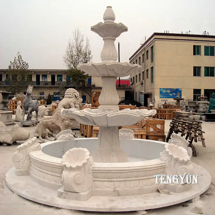 Fountains are increasingly popular for their ornamental and practical use, making them a sight to see in gardens, parks or in your own yard. There are many different models of stone Water fountains, and these white marble water fountain is very modern and simple with tiers.
