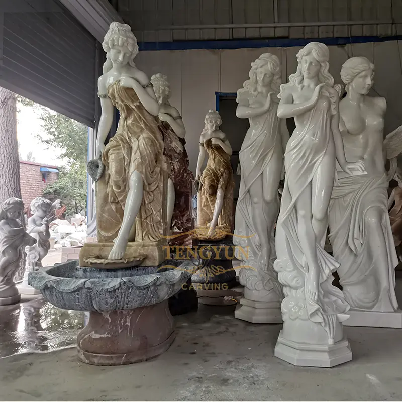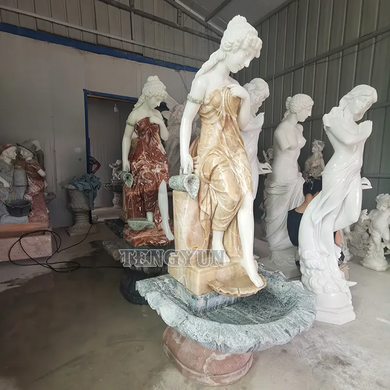 1. Material: The material of the woman statue water fountain is natural marble.