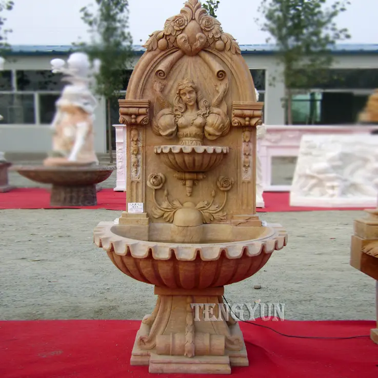 Marble wall water fountains are usually installed against a wall. These wall fountains are natural marble carved. We can also customize them in any size based on your need.