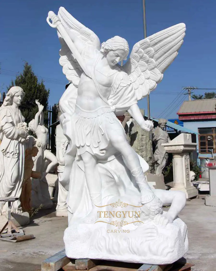 Large Size Famous Angel Statue White Marble Michael Archangel Guardian Sculpture For Sale