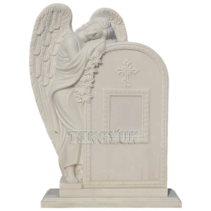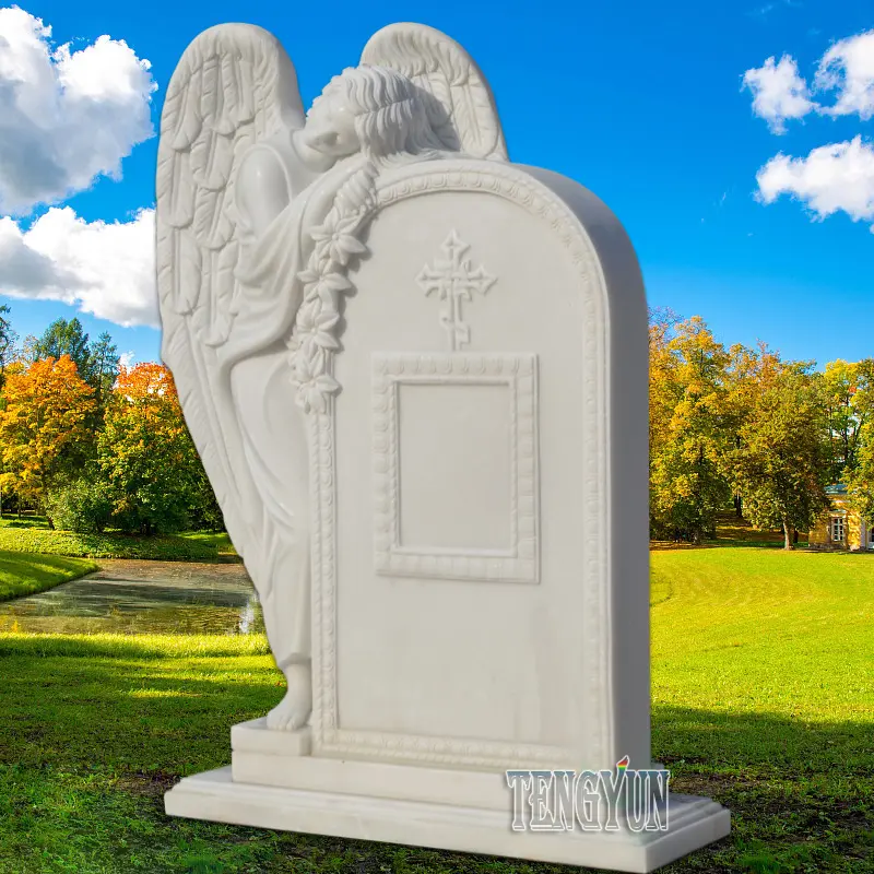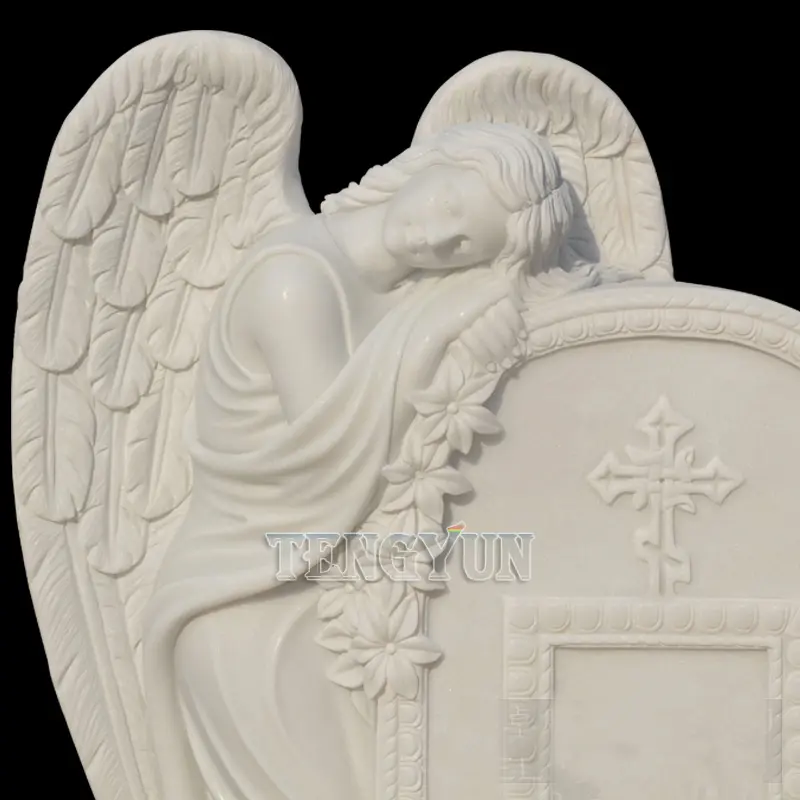 1. Material: The angel headstone statue is natural white marble carved. We choose the best quality marble to carve angels and other statues.