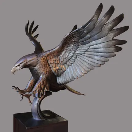 Its compact design makes cooper eagle sculptures ideal for various interior settings, such as living rooms, offices, or lobbies. Whether displayed on a tabletop, shelf, or pedestal, this eagle sculpture serves as a stunning focal point that resonates with its symbolic meaning.