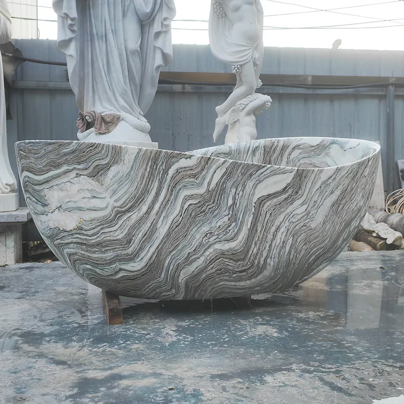 Carved Natural Marble Bathtub with Natural Veins