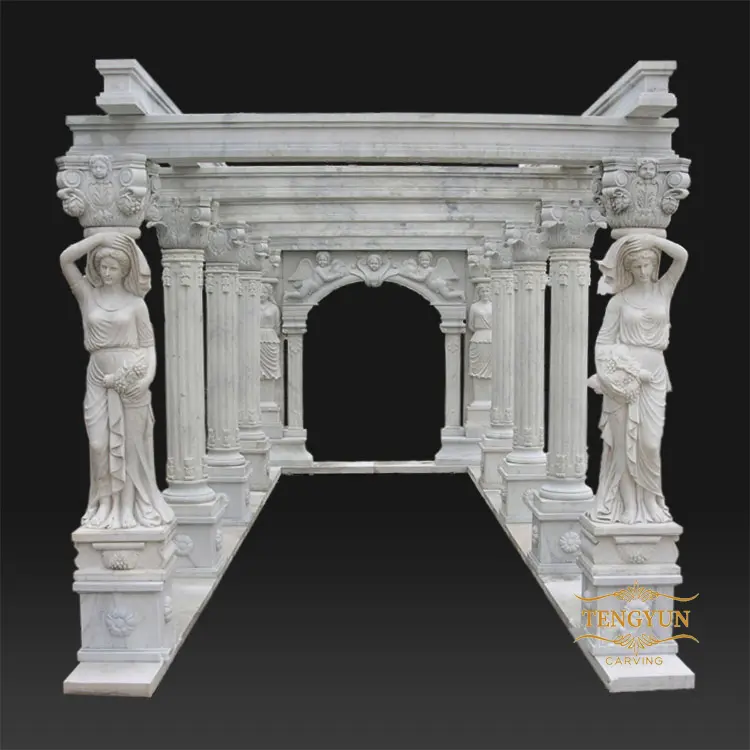 Chinese Exquisite Hand Carved Stone Sculpture Marble Gazebo Rectangular Pavilion With Lady Statues