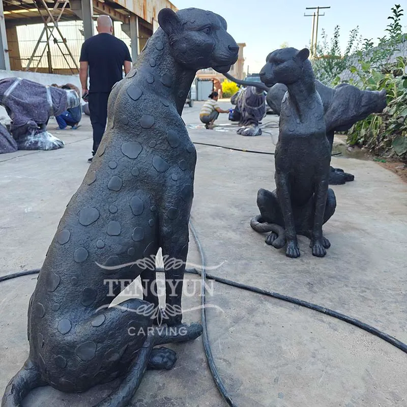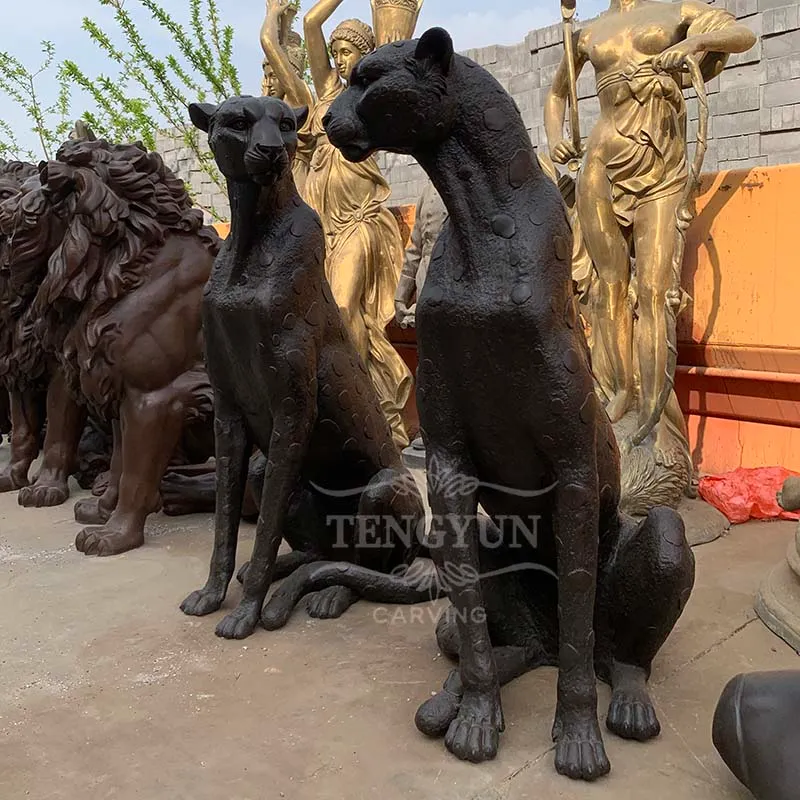 The leopard sculptures are made of bronze, we can make them in any size as your request. If you are interested in it, welcome to contact us for more information and prices.