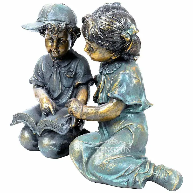 Garden Outdoor Decorative Bronze Statue Boy And Girl Reading A Book Sculpture