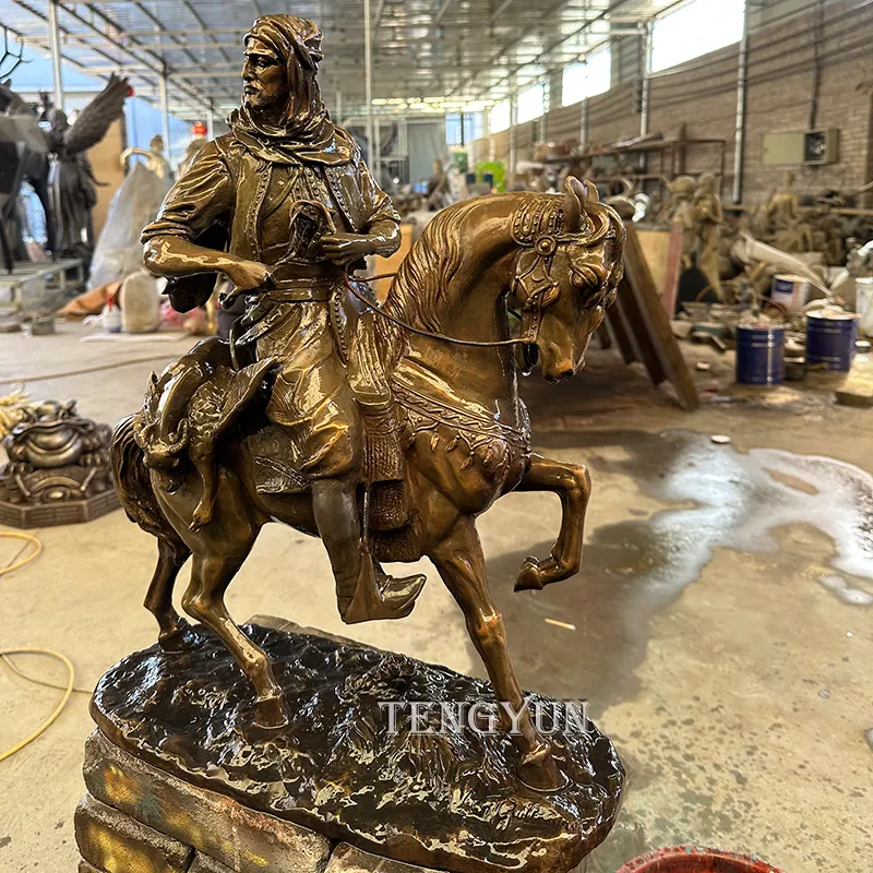 The statue of Armed Horse Rider is made from high-quality cast bronze, this equestrian statue is not only a work of art but also a symbol of strength and heritage. With its weather-resistant finish, it is suitable for both indoor display and outdoor installation, making the antique bronze horse & Arab rider a versatile addition to luxury homes, art galleries, gardens, hotels, public squares, or memorial spaces.