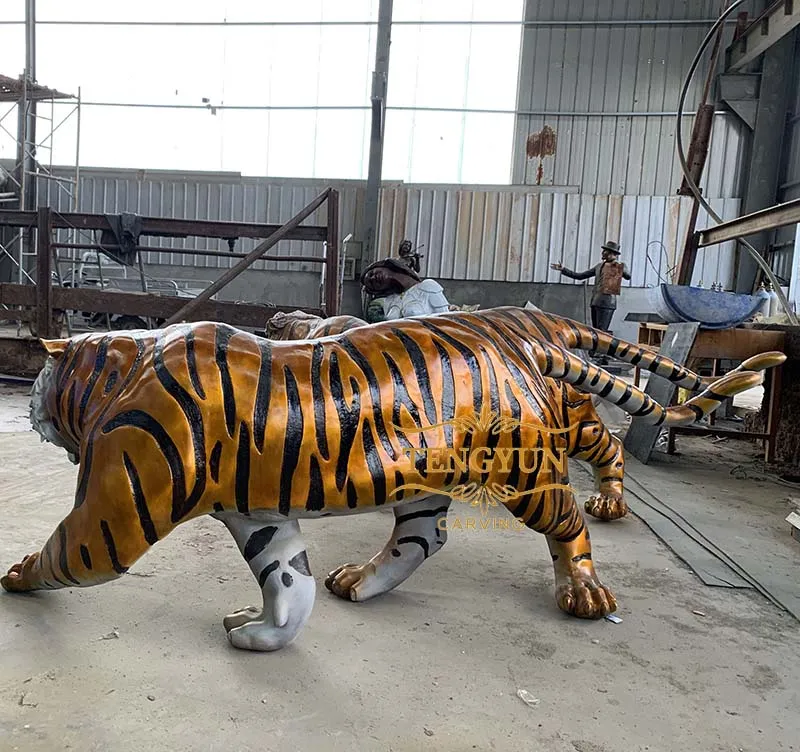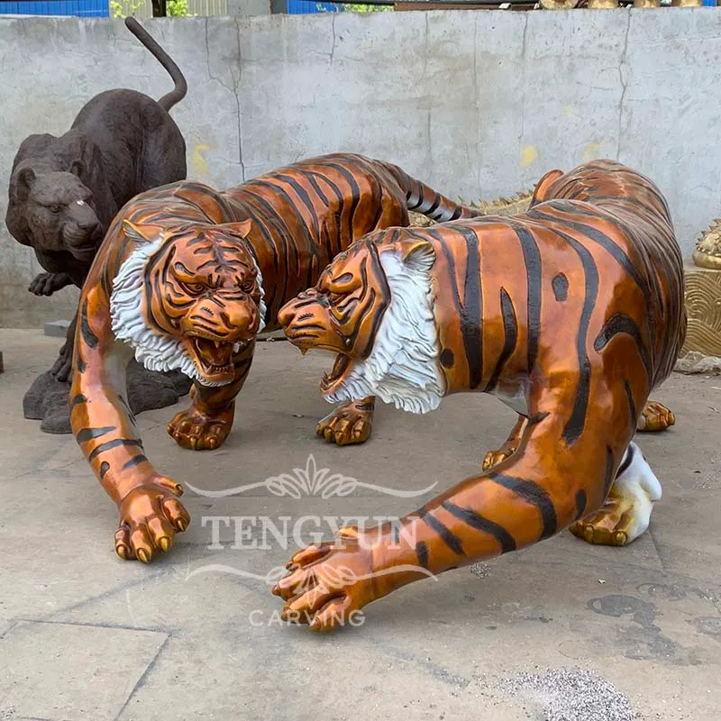 Each tiger is hand-cast in high-quality bronze using traditional lost-wax casting methods, ensuring exceptional detail from the powerful muscles to the intense facial expressions. The realistic patina replicates the natural colors of a tiger’s fur—rich oranges, striking black stripes, and white accents—adding dynamic character and visual impact.