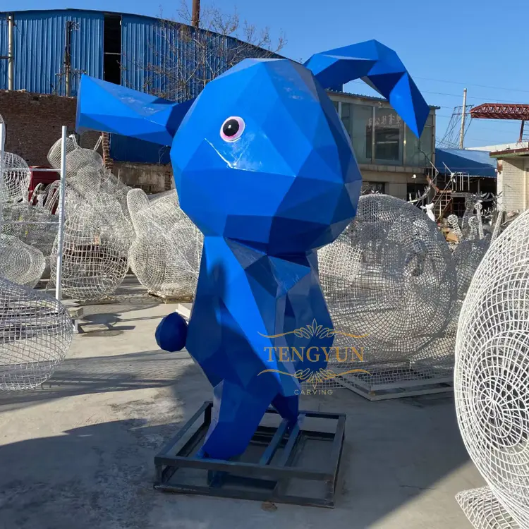 Luxury modern large abstract arts statue geometric animal rabbit with cloud stainless steel sculpture