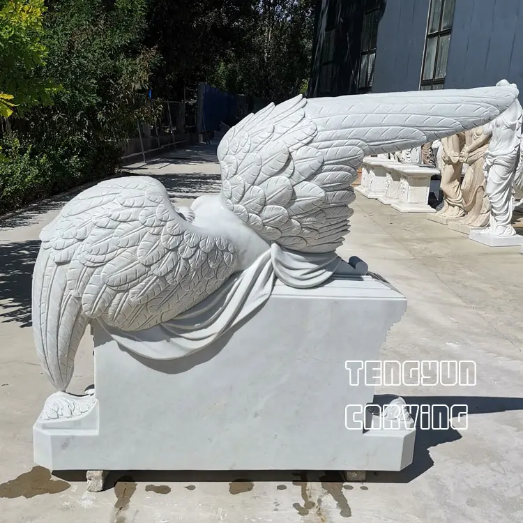 The white marble perfectly presents the beauty and elegance of the angel statue.
