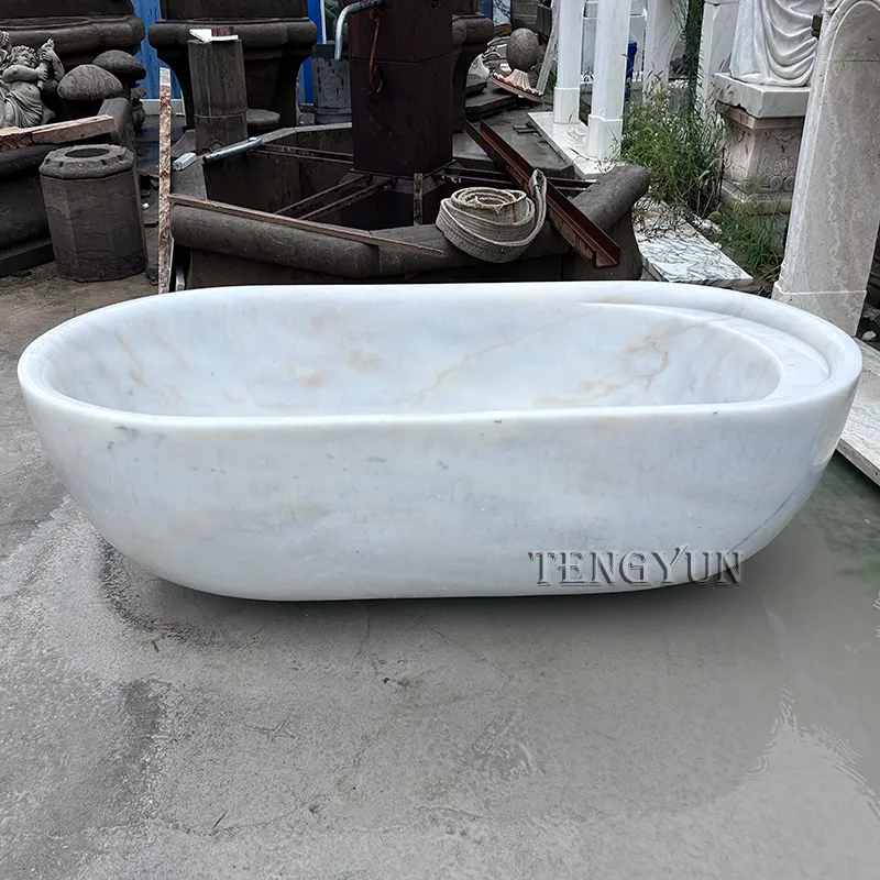 Natural White Marble Freestanding Bathtub – Hand-Carved Stone Tub