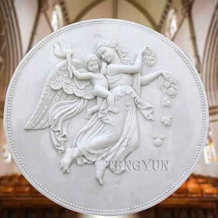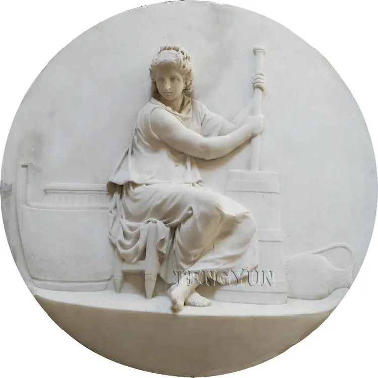 Description: This marble wall statue relief is carved with natural white marble. Our engravers carved it out with excellent engraving techniques to the greatest extent. The delicate faces and realistic clothes pleats give marble figure relief statue life.