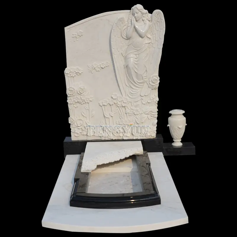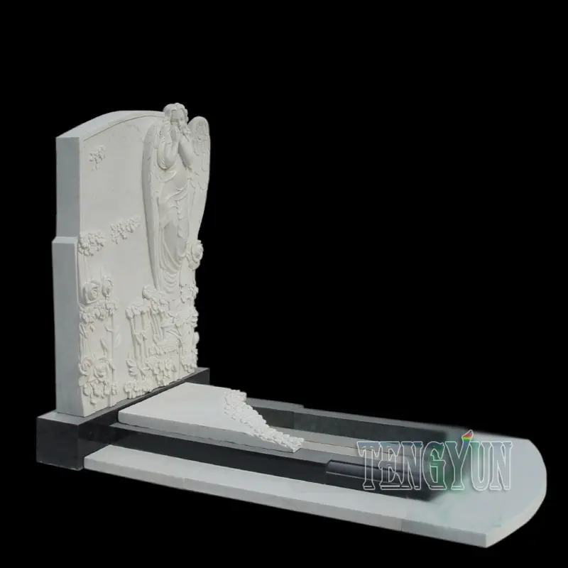 1. Material: The angel relief headstone statue is natural white marble carved. We choose best quality marbles to carve angel and other statues.