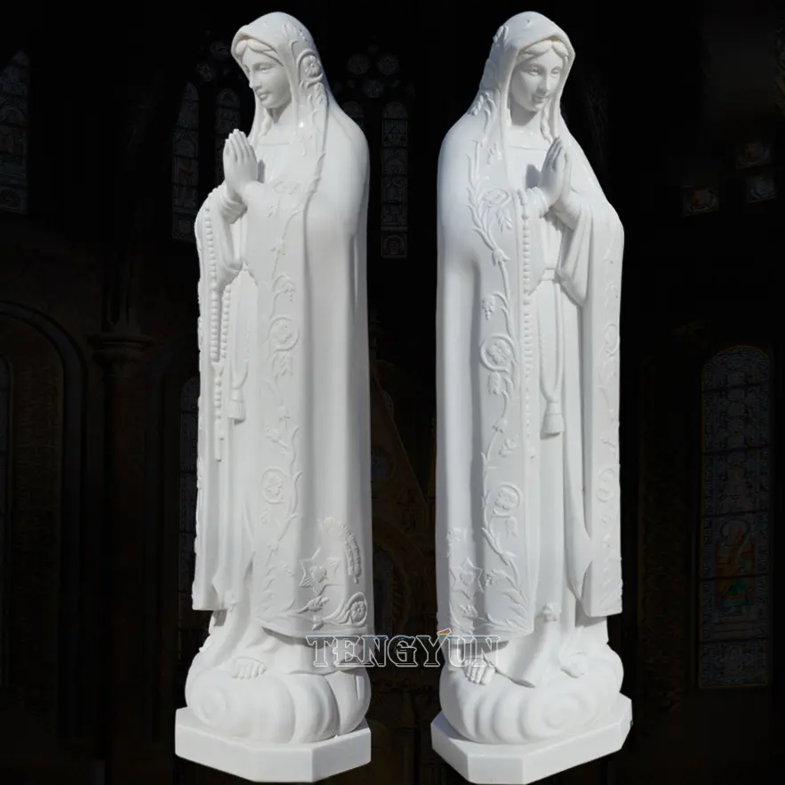 White Marble Carvings Our Lady of Fatima Prayer And Shepherd Children Sculptures for Garden Outdoor Decor