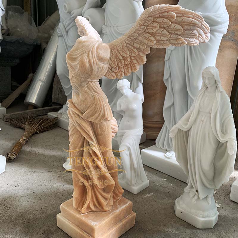 Winged Victory of Samothrace Desktop Decor Small Size Natural Sunset Red Marble Statue